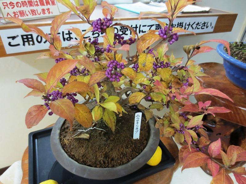 二川中のムラサキシキブ 投稿日時 : 2013/11/19 鈴木(駿) カテゴリ: 紫式部とは,平安時代の人物の名前でもあるが,実は花の名前でもある。ムラサキシキブは,秋に光沢のある紫色の小さな果実を葉の付け根あたりにまとめてつけるのが一番の特徴である。そんな美しいものが二川中には飾られているのである。 Tweet {{options.likeCount}} {{options.likeCount}}
