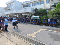 3校時は、地震を想定した避難訓練も行い、静かに素早く行動しました。暑い中での避難となりましたが、どの生徒も集中して取り組むことができました。