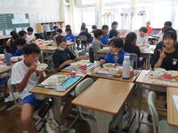 夏休みが明け、今日から給食が再開しました。久しぶりのおいしい給食、何よりクラスの仲間との会食を多くの生徒が楽しんでいました。