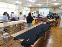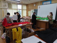 本日午後、PTAボランティアに応募してくださった保護者の皆様が、体育祭で使用する法被を作ってくださいました。