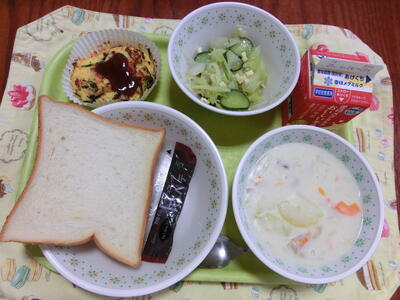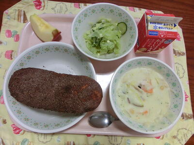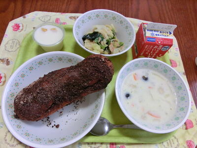 「米粉のチャウダー」の米粉は野田市でとれた「黒酢米」を粉にしたものです。JAちば東葛農協さんから寄付をいただきました。