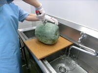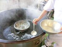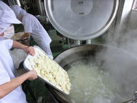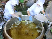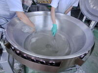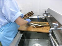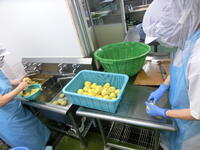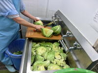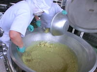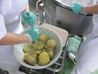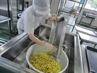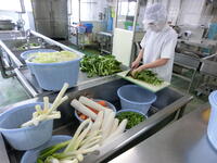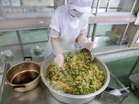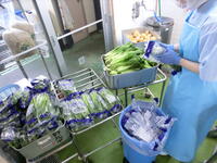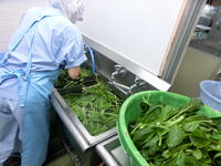 「磯香和え」に入る沢山の小松菜。下処理の様子。