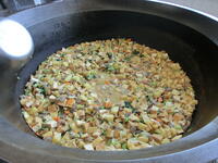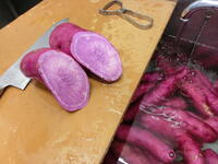 さつまいもは、オーブンで焼きご飯に混ぜ込みます。