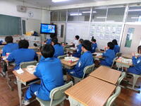 クラスで【野田の恵みを味わう給食の日】の動画を見ている様子。