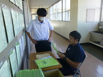 3年生では、15校の高校の先生をお招きし、高校説明会を行いました。一人が6校の高校のお話を聞き、進路に対する意識を高める機会となりました。夏休みから秋にかけては、学校説明会や体験入学等に参加し、自分が進学したいと考えている学校の情報を、しっかりと集めてほしいと思います。