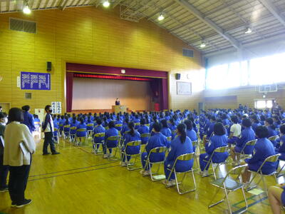 1校時は全校集会。3学年そろって体育館で実施するのは数年ぶりでしたが、集中して話を聞くことができました。休み明け、全校で良いスタートを切ることができました。明日からも頑張りましょう!