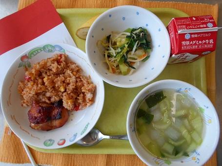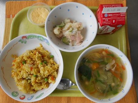 カレーピラフ、牛乳、