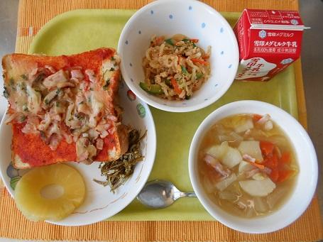 ピザトースト 牛乳、