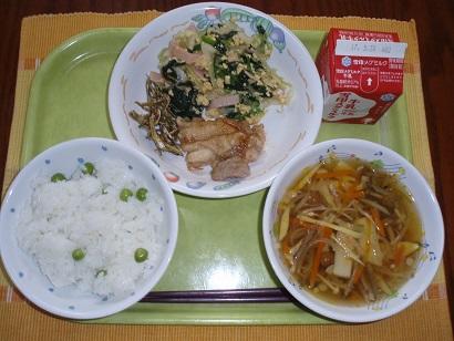 5月17日のメニューは、グリンピースごはん、牛乳、