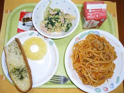 今日のメニューは、北中パン、スパゲティナポリタン、清見みかん