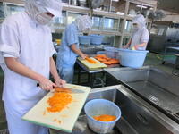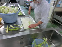 2年生が授業で皮むきしてくれた「ねぎ」を今日の給食に使用しました。