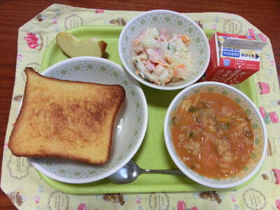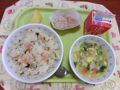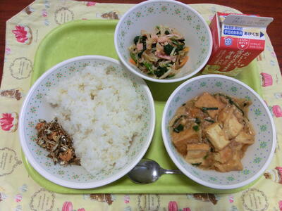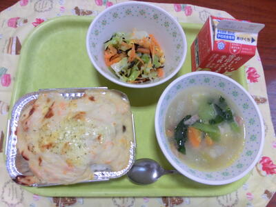 キャッチコピーは「色取り満点・みんなが大好きな給食」組み合わせがよく、人気のメニューです。ほぼ完食でした。