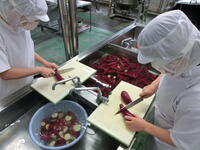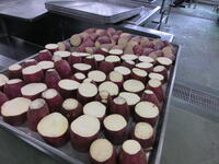 「芋ようかん」スチームオーブンでさつま芋を蒸している様子。さつま芋は、千葉県産、紅はるかです。