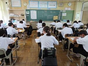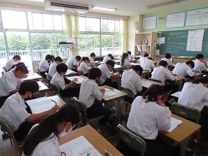 3年生では、15校の高校の先生をお招きし、高校説明会を行いました。一人が6校の高校のお話を聞き、進路に対する意識を高める機会となりました。夏休みから秋にかけては、学校説明会や体験入学等に参加し、自分が進学したいと考えている学校の情報を、しっかりと集めてほしいと思います。