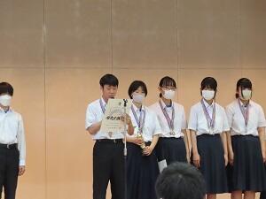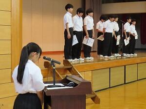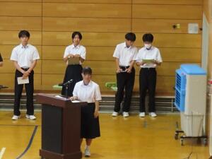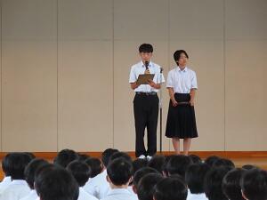 生徒会による進行 各部の代表が大会の報告をしました。