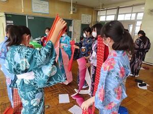 1年生 家庭科 ゆかたを着てみよう