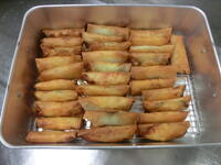 「さけの春巻き」鮭とチーズを春巻きの皮で包んで油で揚げました。