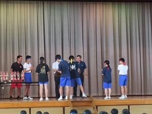 体育祭練習も3日目となりました。今日は予行練習です。各種目の入退場や内容、係の役割や他の係との連携などの確認を行いました。また体育祭当日は体育祭の動画を撮影します。今日は撮影業者さんも参加して、撮影位置の確認やドローンにる撮影のテストも行いました。