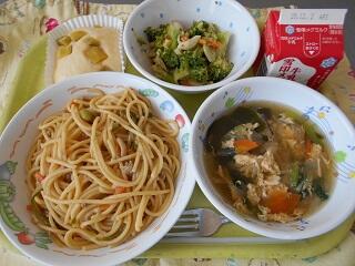 11/19の給食 投稿日時 : 2020/11/19 北部中学校 カテゴリ: 11月19日は「野田の恵を味わう給食の日」でした。 メニューは、 野田産もろみが香る和風スパゲティー、 牛乳、ブロッコリーのゴマドレサラダ、 卵スープ、さつまいも蒸しパンでした。 {{options.likeCount}} {{options.likeCount}}