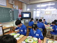 献立を考えてくださった野田市の和食店かんざさんのコメントを鑑賞しつつ給食を食べています。