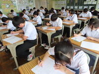2・3年生は、慣れた様子で50分間の試験時間を有効に使い、最後までの貼り強く問題に取り組む姿が印象的でした。