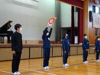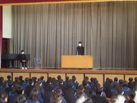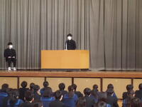 令和3年12月23日(木)、12月の全校集会が行われました。2・3年生が体育館に入り、1年生は教室でリモートでの参加でした。