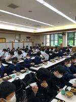 色々な品目でタンパク質が豊富に摂取でき、季節を感じるおいしい給食だったと、生徒指導主任の眞通先生が感想を述べていました。
