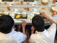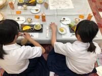 3年生のサポートのもと、1年生は少しずつ配膳が早くなってきたようです。