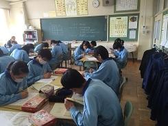 28日(月)インフルエンザも終息しはじめた週初めであったが、校内授業研究会が行われました。今回は来年度の道徳の教科化に向けた「道徳」の授業が展開されました。