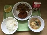 本日の献立はご飯、牛乳、豆腐ナゲット、じゃがいもの金平、きのこ汁、河内晩柑です。