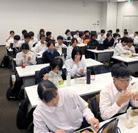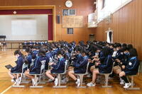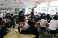 1学年は中学校の生活のリズムにもすっかり慣れ、給食の配膳もはやくなりました。わくわく理科教室では、初めての授業を楽しみながら、熱心に耳を傾けていました。