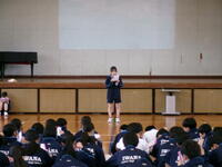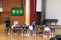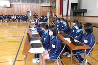 スポーツテスト後、任命式が行われました。各クラスの学級委員の呼名の返事一つひとつからは、これからに向けた強い決意が感じられました。