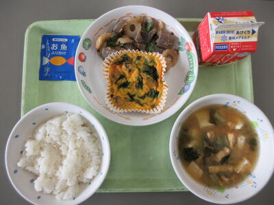 ご飯・牛乳・さばの味噌煮・青菜のチーズ和え・けんちん汁