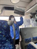 1時間の語り部ガイドさんによる被災地域周りが終了しました。途中、DVDを視聴し、実際の津波の映像などを見ました。
