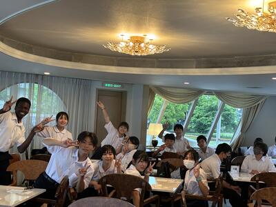 豪華な船とビュッフェに生徒たちも大興奮です!