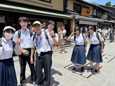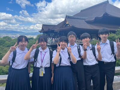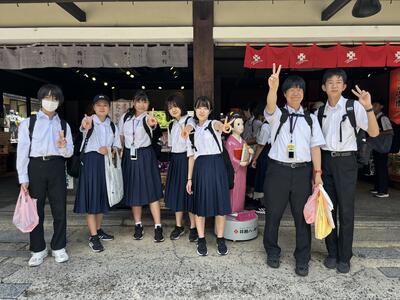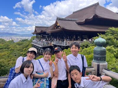 午前中は、清水寺に沢山の班が集結していました。清水寺は二年坂、三年坂を登って、更に階段を沢山上がらなくては辿り着けない場所です。汗をかき、息を切らせながら続々と到着です!