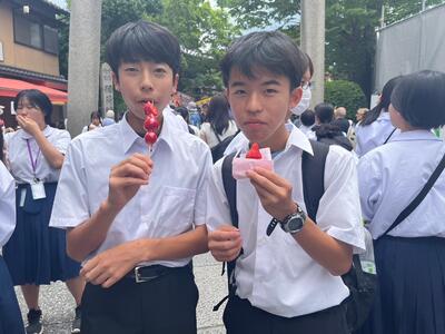 午後は、学業の神様で有名な北野天満宮、金閣寺に多くの班が訪れていました!写真を見ていただくとわかるように、とにかく1日中食べまくっている班もあります!