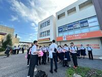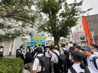 本日の岩名中学校1年生の校外学習は先ほど無事に終了しました。一年生はケガもなく、全員帰路につきました。