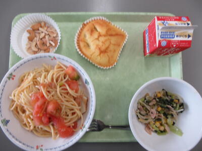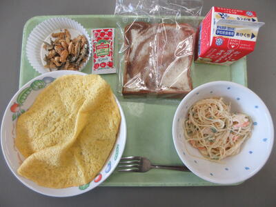 ・岩中パン(ツナマヨ) ・牛乳 ・ミートソースペンネ