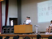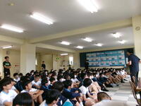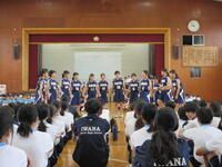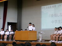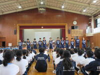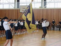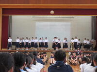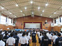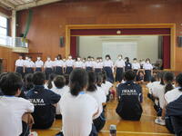 6/25(火)に全校集会が実施されました。5月に行われた市内大会をはじめとする生徒の様々な頑張りが表彰され、全員で努力を讃え合う時間となりました。各委員会からの今後の活動予定の発表や生徒会本部からの生徒会スローガン達成に向けた話も行われ、生徒一人一人が自分も学校の雰囲気を作り上げていく当事者であるということを再確認できました。
