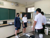 校舎見学では、体育館や各教室、食堂を見学しました。希望者は英語の先生によって英語で施設を案内してもらいました。中学校にはない食堂や自動販売機に興味津々の様子でした。