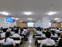 本日午後、2年生は西武台千葉高等学校を訪問しました。全体オリエンテーションでは、中学校と高校の大きな違いである単位制や授業について話を聞きました。また、公立高校と私立高校の違いなど、メモを取りながら真剣に話を聞く様子が見られました。大学進学などを見据えた進路選択の考え方、進路実現のために必要な力を知ることができました。