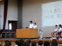 校外学習実行委員が中心となった初めての集会で、とても緊張した面持ちでしたが、準備の成果もあり、最後までやりとげることができました。