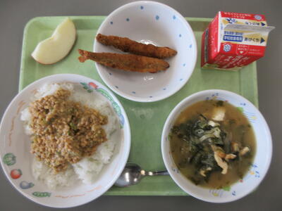 ・ごはん ・牛乳 ・鰺のピリ辛焼き ・茎わかめのきんぴら