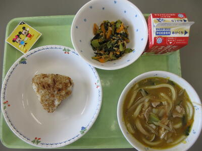 ・ほうとううどん ・牛乳 ・焼きおにぎり