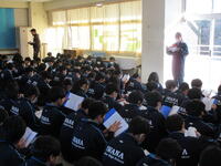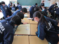 昨日の3時限目に避難訓練を実施しました。4月の第1回とは違い、通常の授業内で発生した地震を想定し、避難するという訓練でした。全体が静かに素早く避難することができました。いざは普段なりの精神で、これからも命を守る行動を大切にしていってほしいです。