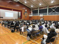 授業参観後に全体会・学年学級懇談会を行いました。全体としては、これまでの振り返りを、3年生では進路のお話、2年生ではスキー林間について、1年生では初めての中学校生活についてと、充実した時間となりました。