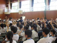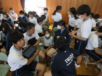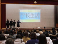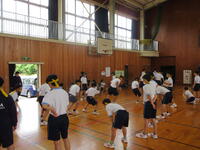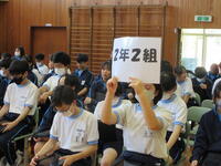 (本日は1年生が体育館で学年交換会を実施しました!)