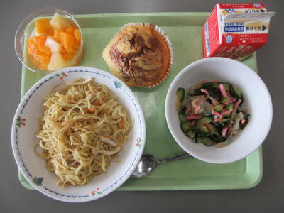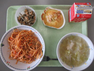 ・スパゲッティナポリタン ・牛乳 ・塩バナナケーキ