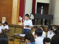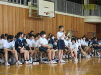 スポーツテストのあと、体育館にて前期任命式を行いました。全学級の学級委員が呼名され、代表のリーダー会長の尾上くんが校長先生より任命状をもらいました。いよいよ、本格的に各学年・学級の動きが始まっていきます!